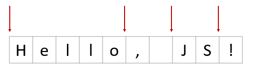Например, в строке Hello, JS! следующие позиции квалифицируются как граница слова: